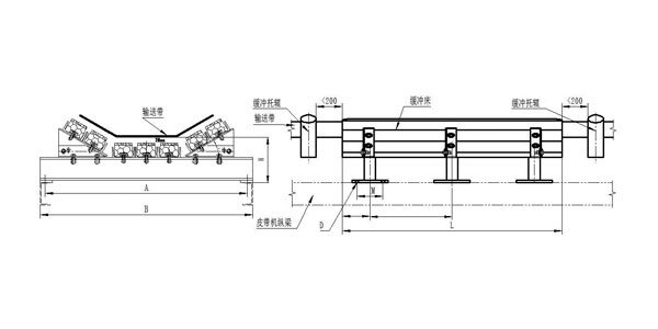 DB-HCC系列緩沖床應(yīng)用于帶式輸送機(jī)受料點(diǎn),代替了傳統(tǒng)的緩沖托輥。與緩沖托輥相比其大的受力面積減緩了物料對(duì)輸送帶的沖擊和損壞,避免了銳利物體對(duì)輸送帶的撕裂和劃傷,防止物料溢出灑落。